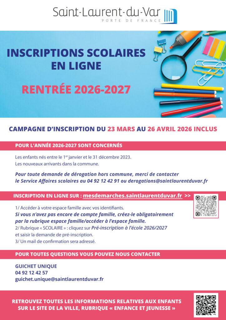 INSCRIPTIONS SCOLAIRES 2026-2027