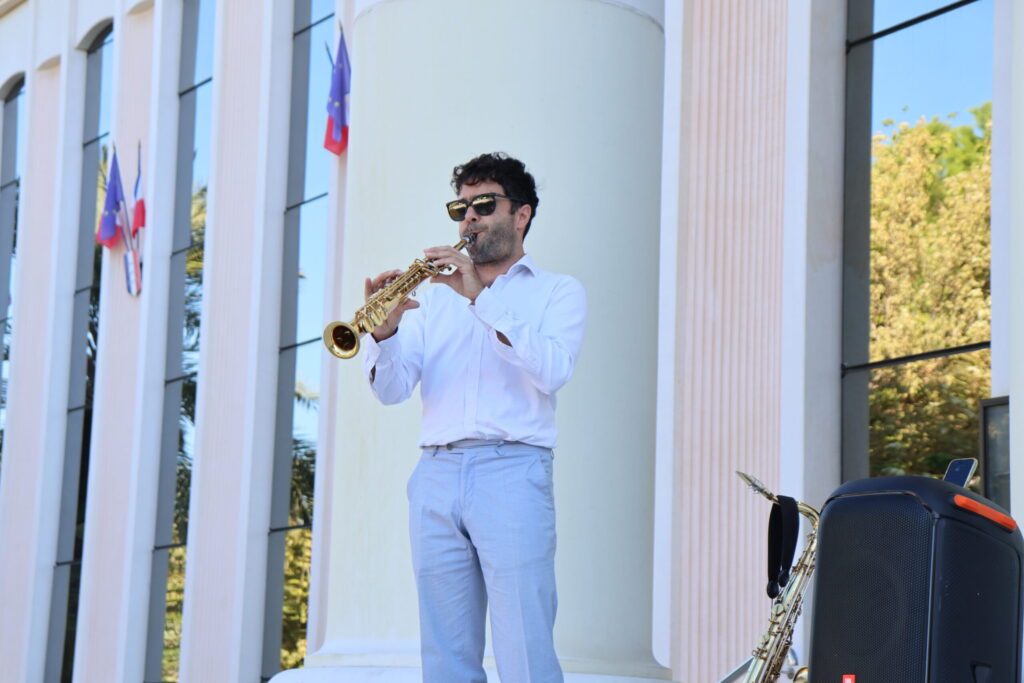 La journée a démarré au son du saxophone d’Antony DEPETRIS pour inaugurer l’exposition “Le patrimoine architectural à Saint-Laurent-du-Var”.