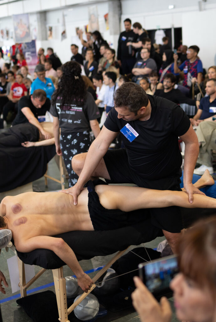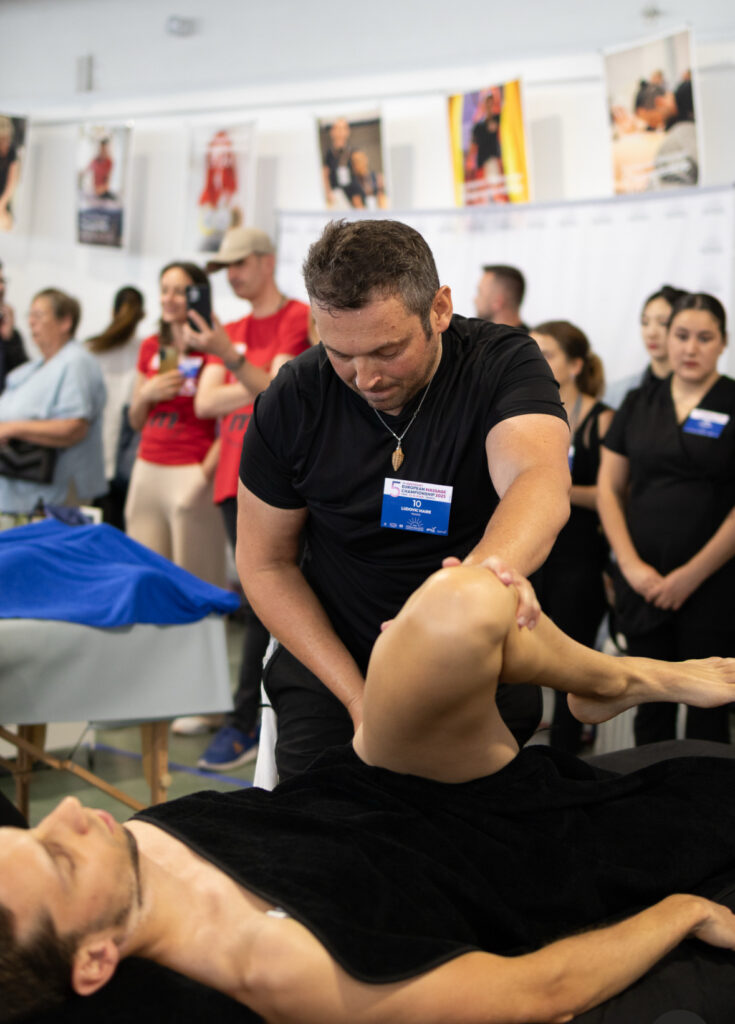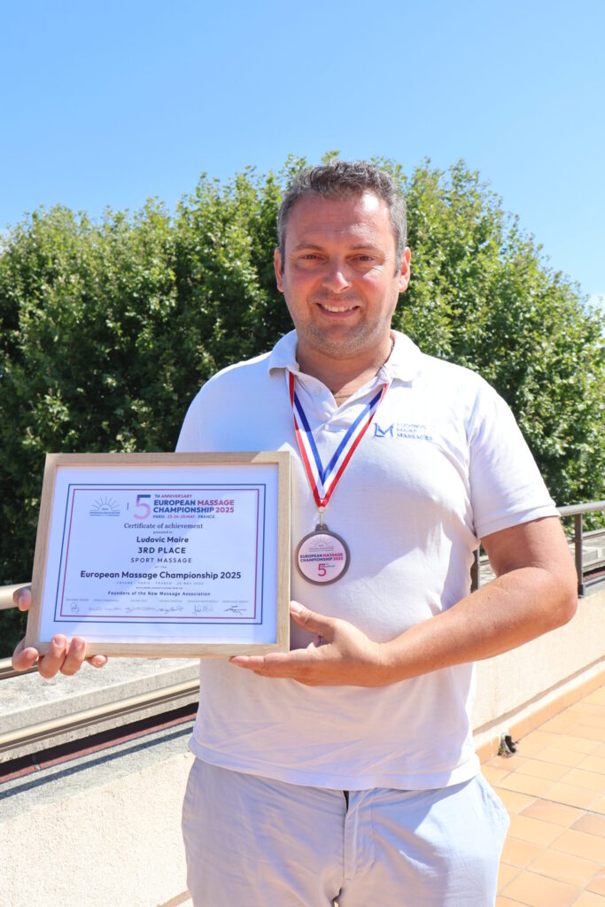 En 2022, Ludovic Maire découvre un autre univers du massage : celui de la compétition. « Cela s’est fait un peu par hasard, décrypte-t-il. Cette année-là, les championnats d’Europe de massage étaient organisés à Villeneuve-Loubet. En tant que voisin, je me suis dit que c’était une formidable opportunité d’y participer. » Première participation et… premier trophée ! Ludovic Maire décroche en effet le « Trophée de l’empathie ». Une distinction qui récompense l’un des aspects fondamentaux du massage : « Bien entendu que la technique est primordiale, mais l’empathie, c’est le socle, le fondement-même d’un bon massage. Quand je masse une personne, je suis totalement concentré et à l’écoute, je ne pense pas à autre chose. Que ce soit avec un client dans mon cabinet, à domicile ou en compétition, on se doit d’avoir le même investissement. C’est très important et c’est pour cela que ce trophée de l’empathie en 2022 a beaucoup compté pour moi. » Dès lors, Ludovic Maire participe chaque année aux différentes compétitions européennes et internationales. Il revient rarement les mains vides, récoltant plusieurs médailles dans différentes disciplines et intégrant régulièrement le Top 10. Lorsque se profilent les championnats d’Europe 2025 à Paris, Ludovic se lance un défi personnel : « Je n’avais jamais décroché de médaille dans la catégorie « massage sportif », qui est pourtant l’une de mes spécialités. J’ai donc voulu mettre toutes les chances de mon côté, même si la concurrence était rude avec 240 participants parmi les meilleurs d’Europe. » Pour atteindre son objectif, il s’entoure de champions expérimentés. Il est « coaché » par Nadine Stark Chognon (championne du Monde de sport massage en 2023) et Jacques Humpich Poullard (champion du monde 2019). « Ils m’ont beaucoup apporté en termes de technique mais aussi de préparation mentale, analyse Ludovic. Dans un art aussi subtil que le massage, ce sont les petits détails qui font la différence. » En terminant troisième de la discipline « Sport Massage », le Laurentin d’adoption a donc atteint son objectif.