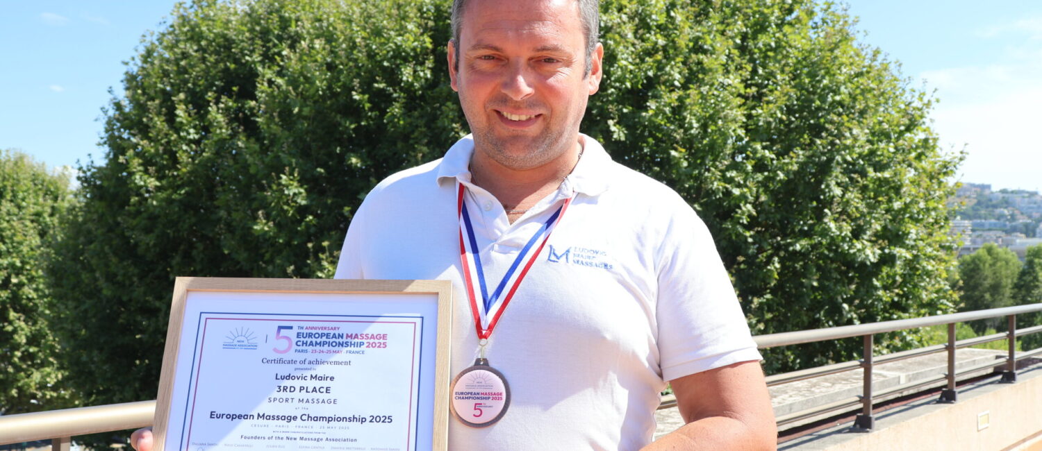 En décrochant la médaille de bronze de massage sportif aux championnats d’Europe 2025 de massage, Ludovic Maire a atteint son objectif, lui qui enchaîne les performances et les récompenses depuis ses premiers pas en compétition en 2022. Mais pour ce véritable passionné, le plus important est de masser… avec le cœur.
