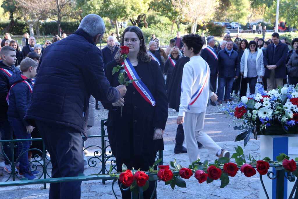 La cérémonie se voulait solennelle avec une remise d’écharpe tricolore, d’un diplôme et d’une carte d’élu pour chaque enfant. Direction ensuite le monument aux morts pour un dépôt de gerbe et de roses bleues, blanches et rouges.
