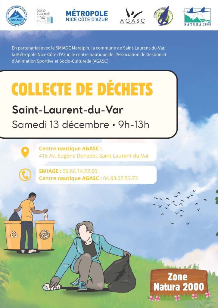 Le SMIAGE (Syndicat Mixte Inondations, Aménagement et Gestion de l’Eau) organise, en partenariat avec le club nautique AGASC de Saint-Laurent-du-Var, une opération de ramassage de déchets sur les îlots de l’embouchure du fleuve Var le samedi 13 décembre au matin, de 9h à 13h.