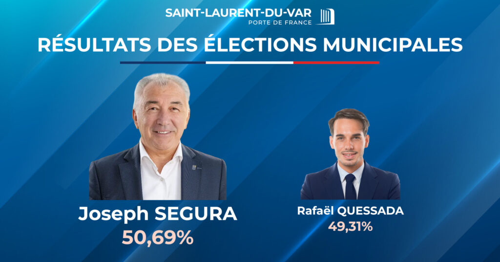 Au terme du second tour des élections municipales, JOSEPH SEGURA (La proximité au cœur de notre engagement) a été réélu maire de Saint-Laurent-du-Var avec 50,69% des suffrages exprimés.