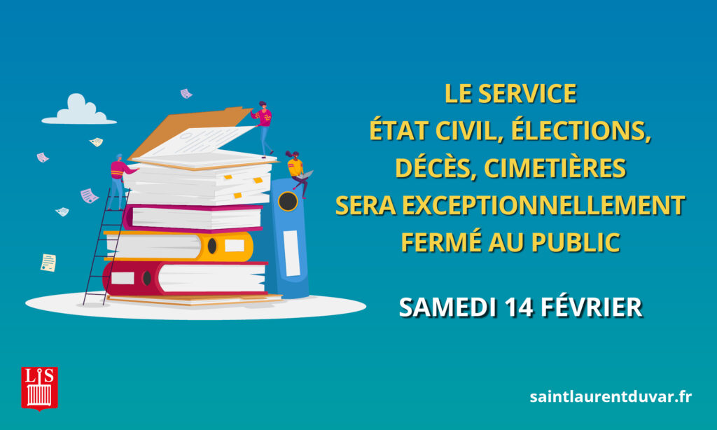 En raison d’une maintenance informatique le samedi 14 février 2026, le service état civil, élections, décès, cimetières sera exceptionnellement fermé.
