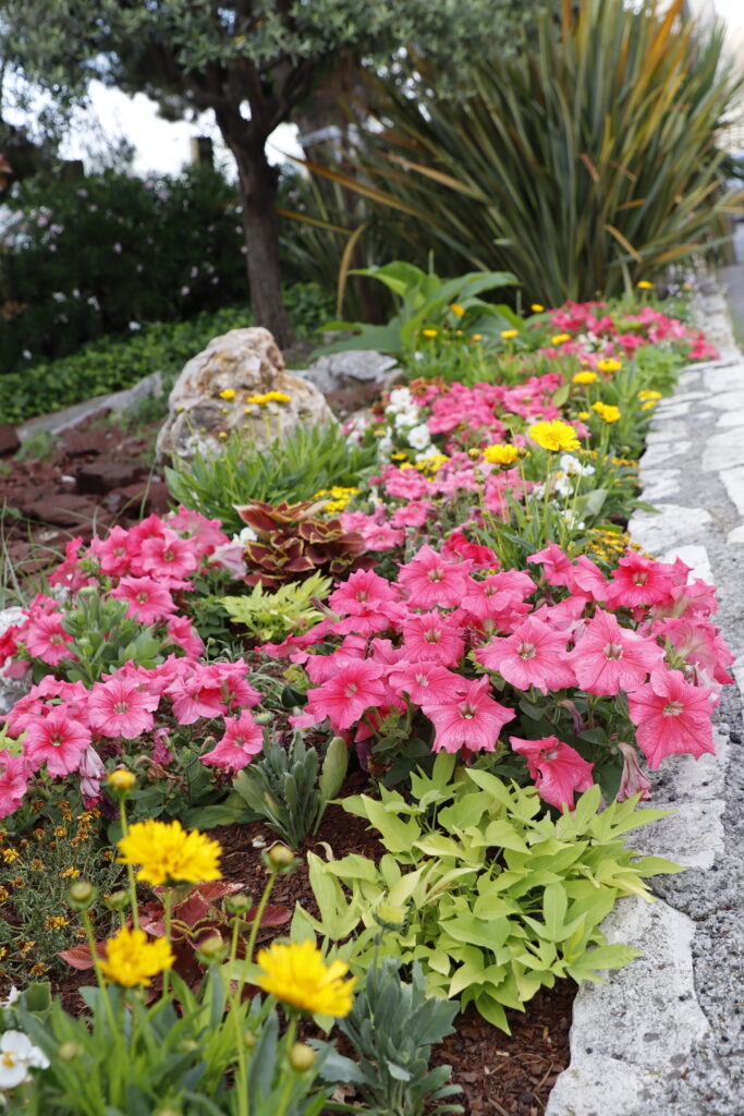 Pour y parvenir, ce sont aujourd’hui les plantes vivaces qui sont privilégiées. Également appelées « plantes pérennes », elles s’opposent aux plantes annuelles qui meurent à la fin de leur cycle et doivent donc être ressemées chaque année. Les plantes vivaces conservent un bulbe résistant dans le sol, qui lui permet de refaire son cycle et donc de refleurir chaque année. À Saint-Laurent-du-Var, les plantes vivaces remplacent petit à petit les plantes annuelles. D’une part parce qu’elles consomment moins d’eau. D’autre part, parce qu’elles demandent moins de temps de préparation des massifs.