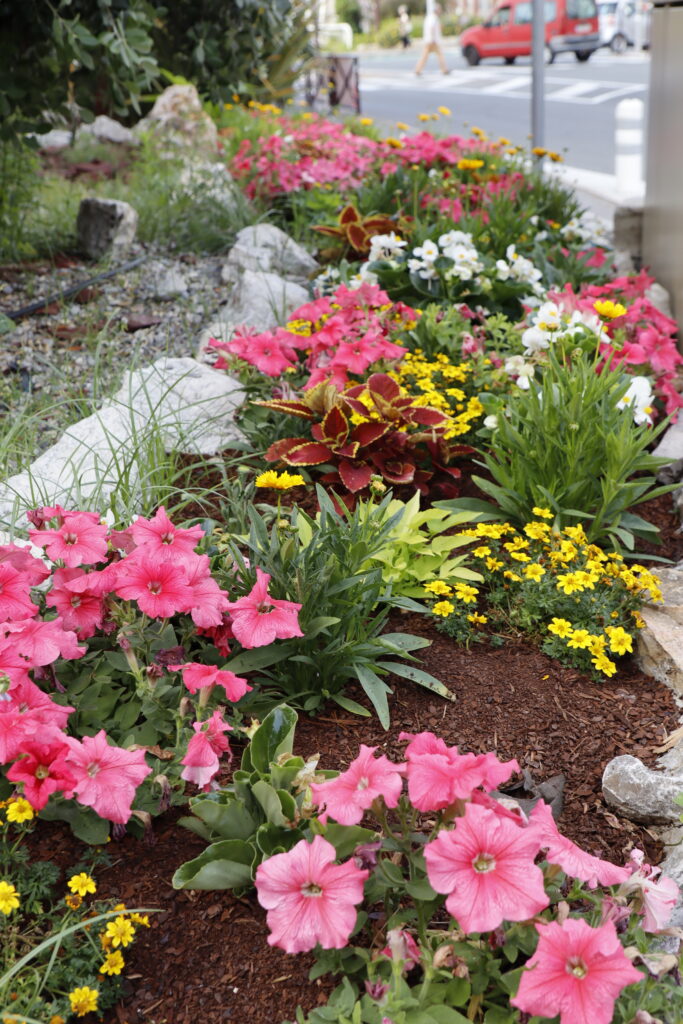 Des massifs fleuris, la commune en compte environ 315 m². En pleine terre, une vingtaine de sites sont répertoriés, qu’ils soient positionnés en tapis ou en pots. Dans le cadre du respect de la biodiversité, le fleurissement est différencié et réfléchi. Ainsi, on trouvera essentiellement des plantes et des fleurs endémiques, adaptées à notre région et surtout à notre climat. L’arrosage est en outre optimisé et s’adapte davantage à la météo. Grâce à des temps d’arrosage revus à la baisse, la commune parvient à réaliser de réelles économies d’eau.