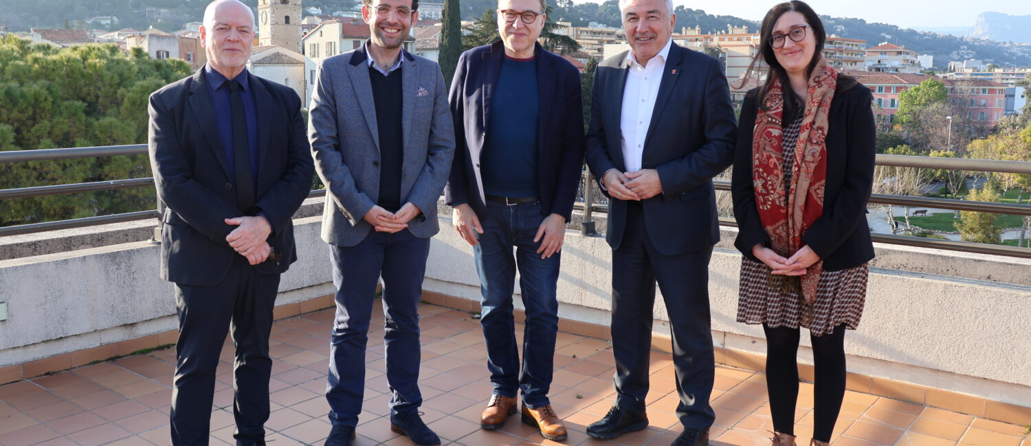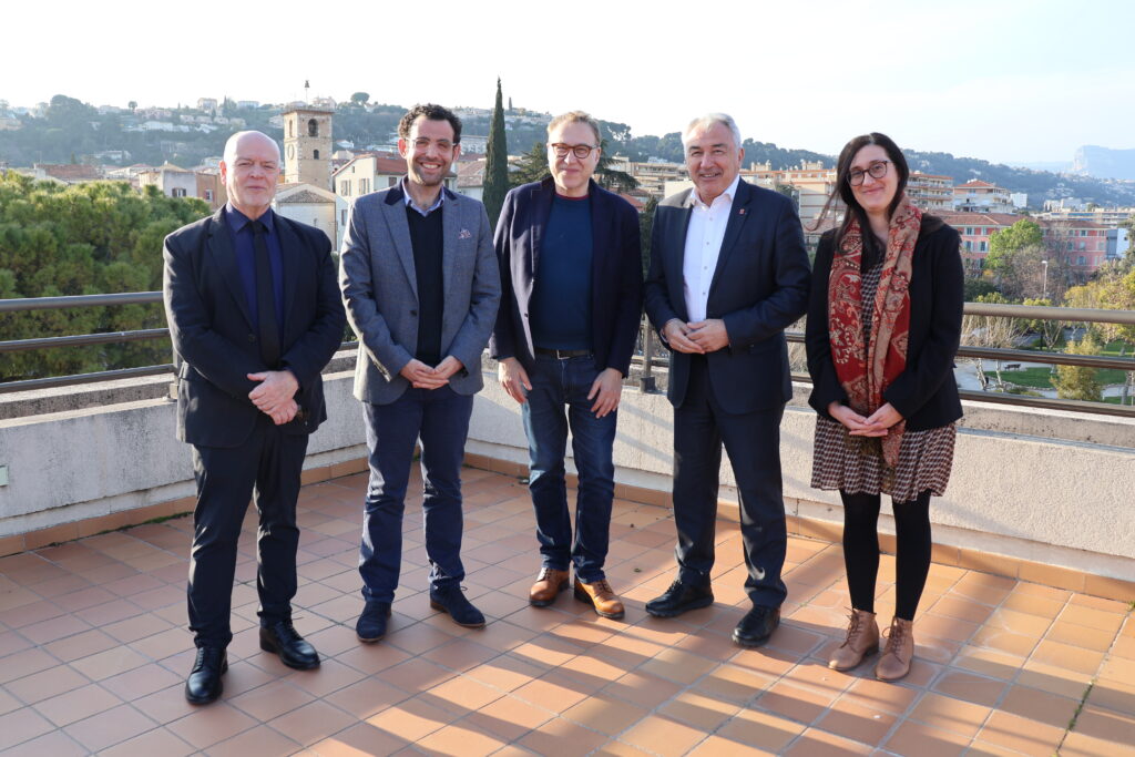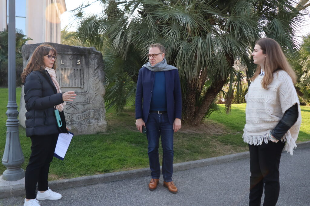 À l’issue de cette visite guidée, Monsieur le Maire Joseph Segura, Thomas Berettoni, premier adjoint, Léa Galano, directrice des affaires culturelles, de l’événementiel et des archives, et Jérôme Chrétien, directeur du conservatoire, ont eu le plaisir de recevoir Jean-François Zygel pour un entretien sur les terrasses de l’hôtel de ville.