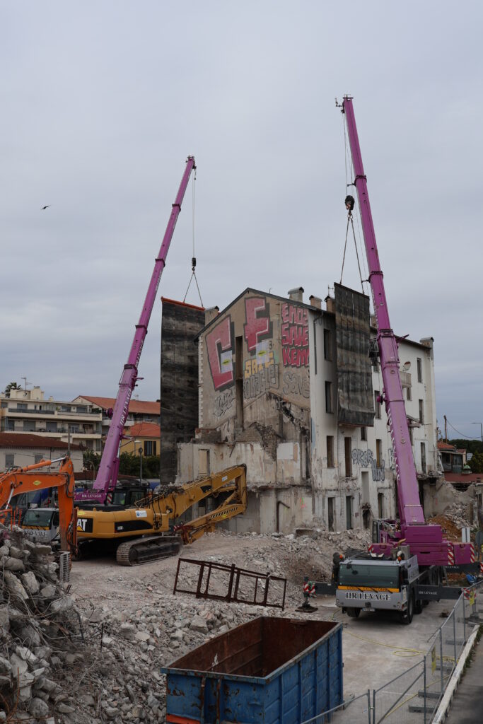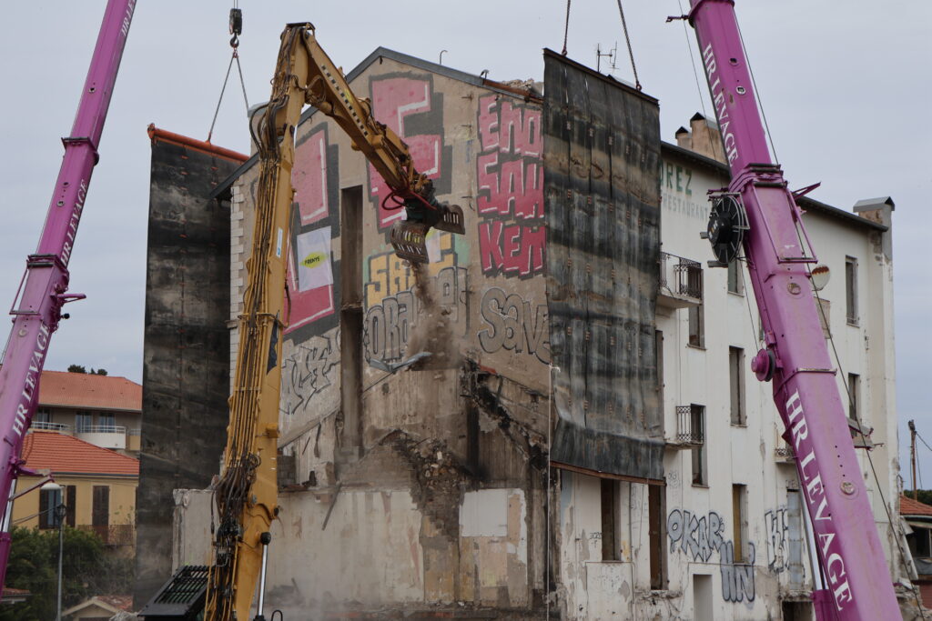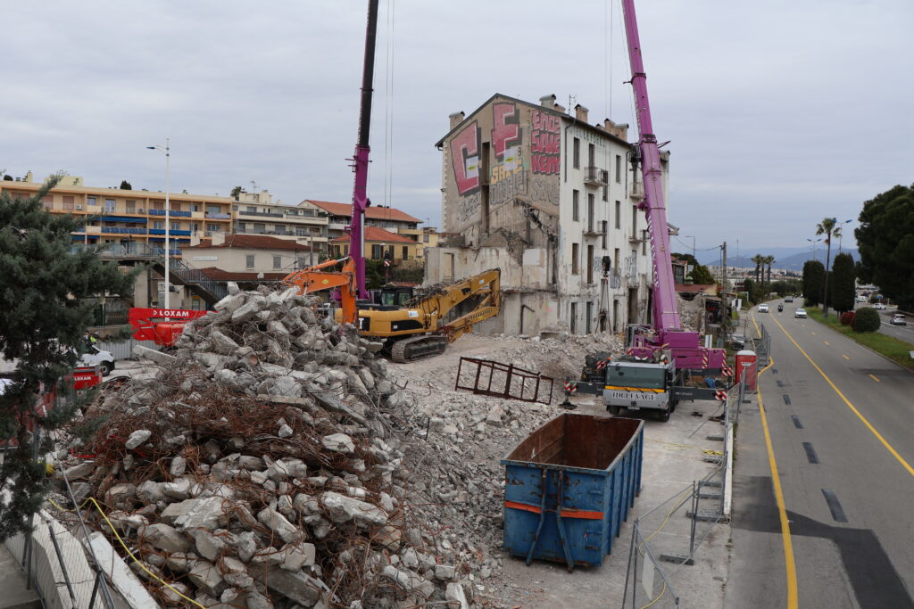 L’une des étapes de ce projet structurant sur la commune de Saint-Laurent-du-Var est la destruction de “l’îlot Gare Sud”, près de la passerelle de la gare, où l’hôtel “Le Forez” commence à être détruit aujourd’hui. Les bâtiments qui le jouxtaient sont déjà à terre depuis quelques jours.