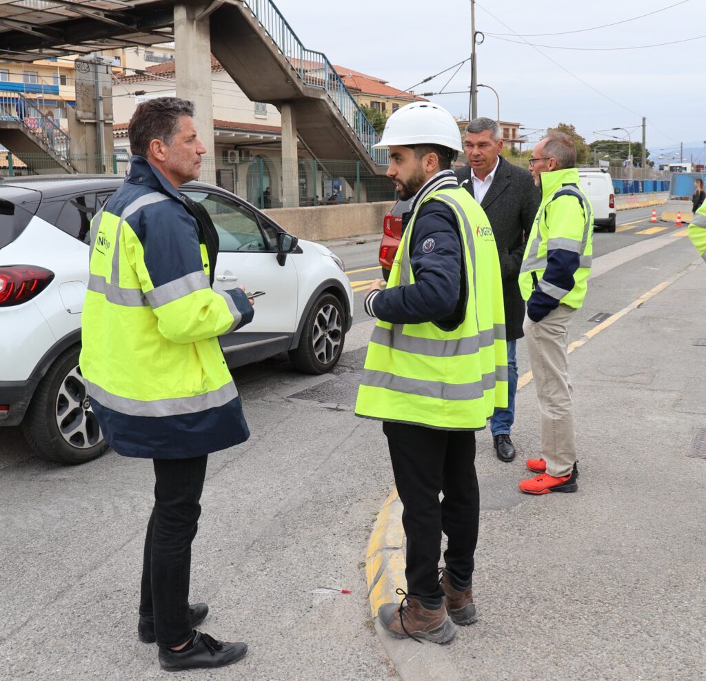 Ce lundi 7 avril 2025, Joseph Segura, maire de Saint-Laurent-du-Var, président délégué de la métropole Nice Côte d’Azur, entouré de Thomas Berettoni, premier adjoint, Éric Bonfils, adjoint, Stéphane Dorée, directeur général des services techniques, et de techniciens, était présent à Saint-Laurent-du-Var pour faire un point sur l’avancement des travaux de la ligne 4 du tramway.