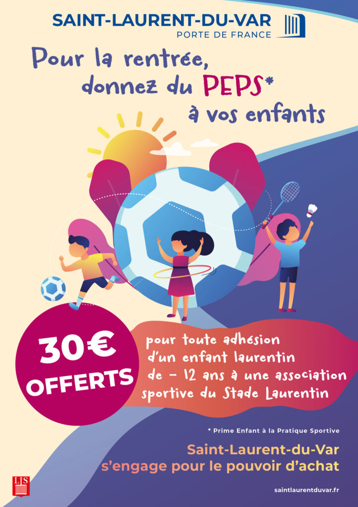 Lancée sous l’impulsion de Joseph Segura, maire de Saint-Laurent-du-Var, et Gilles Allari, adjoint aux sports, cette prime versée par la commune à tous les jeunes licenciés laurentins de moins de 12 ans qui s’inscrivent dans une association sportive du Stade Laurentin, a remplacé depuis l’année dernière le coupon sport municipal. Ce dernier était réservé aux familles percevant l’Allocation de rentrée scolaire (ARS) alors que la Peps est accessible à tous les foyers laurentins, sans conditions de ressources.