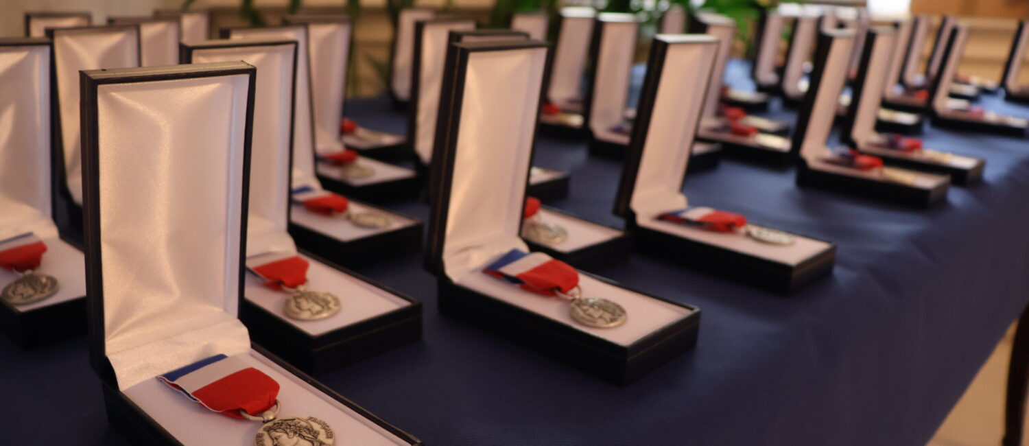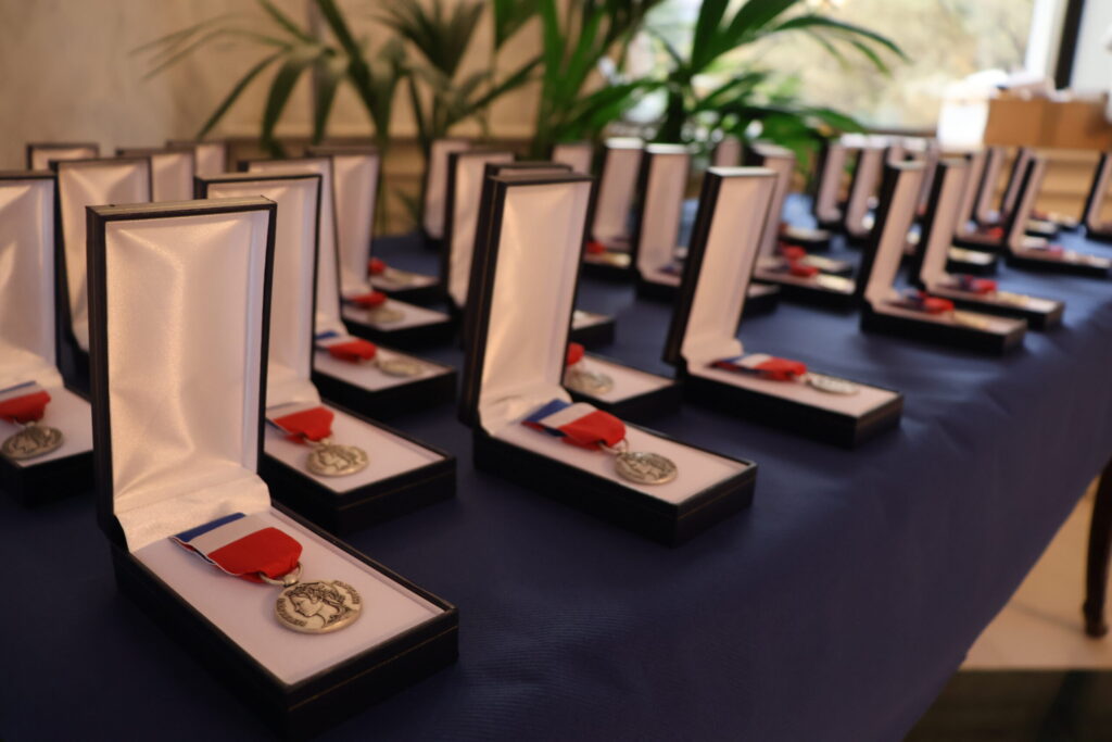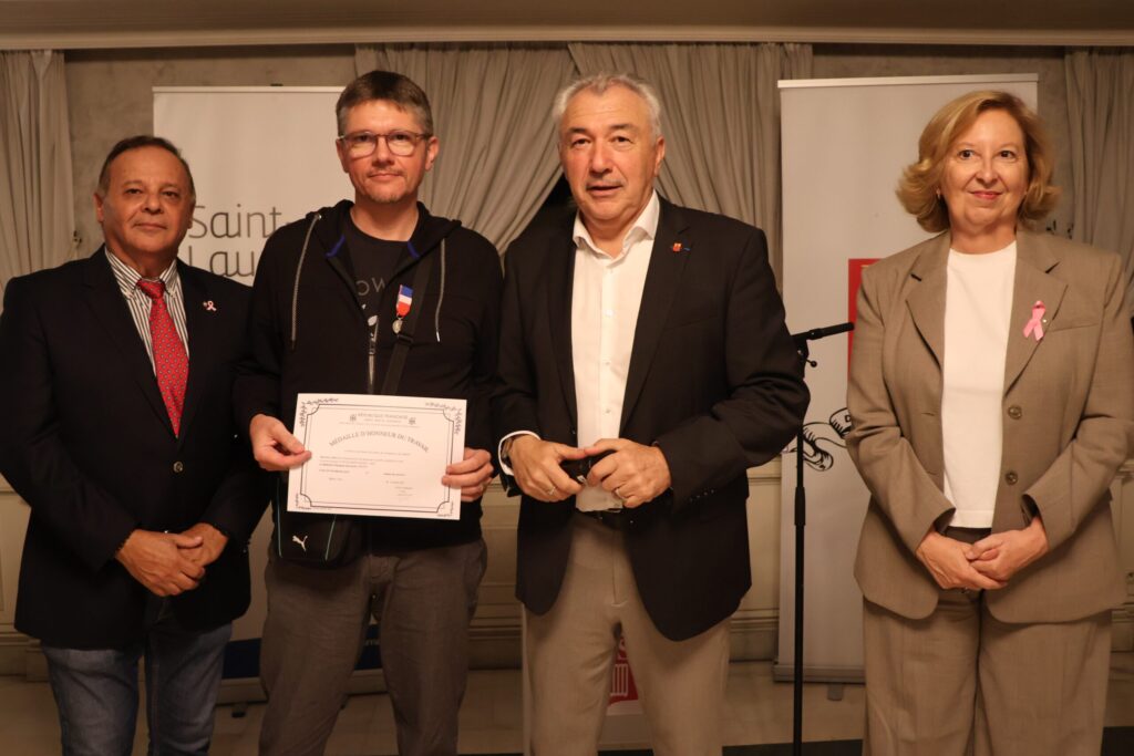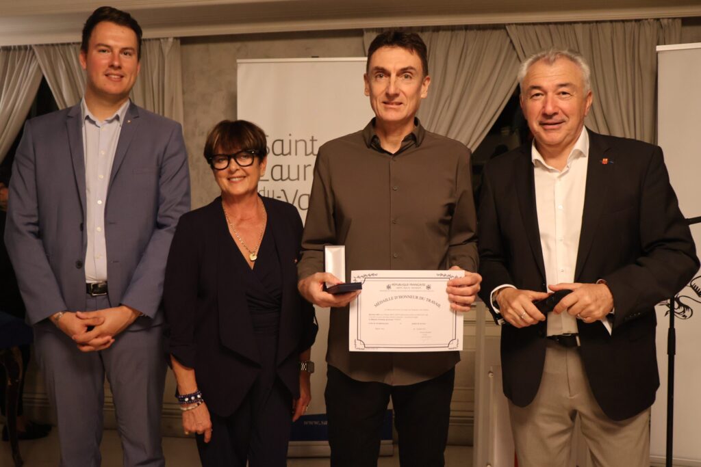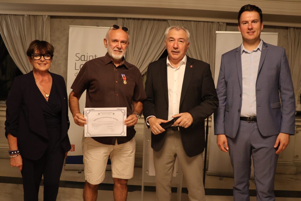 Le maire de Saint-Laurent-du-Var, entouré de ses adjoints et conseillers municipaux, a félicité les Laurentines et Laurentins ayant obtenu leur distinction après 20 ans de service (argent), 30 ans (vermeil), 35 ans (or) et même 40 ans (grand or).