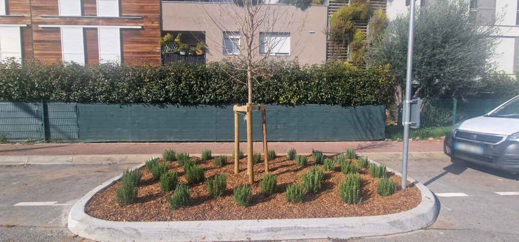 Ces derniers mois, la végétalisation « en régie » s’est déclinée à travers plusieurs projets, menés sur différents sites de la commune. On peut citer pour exemples : la création de deux massifs à la place de la fontaine obsolète au jardin Robin des Bois, la plantation de trois arbres (érables champêtres) chemin des Romarins dans le cadre d’un projet de réfection de voirie, la plantation d’un tilleul provenant de la place Jean Moulin dans le nouveau parc des Rascas, l’aménagement en cours de la placette située devant le jardin d’enfants des Rascas après la suppression du point d’apport volontaire… Sans oublier la plantation d’une haie (40 arbustes et des jasmins) sur la périphérie du parking du dojo, la réfection des massifs avenue France d’Outre-Mer ou la requalification globale du clos Saint-Hubert.