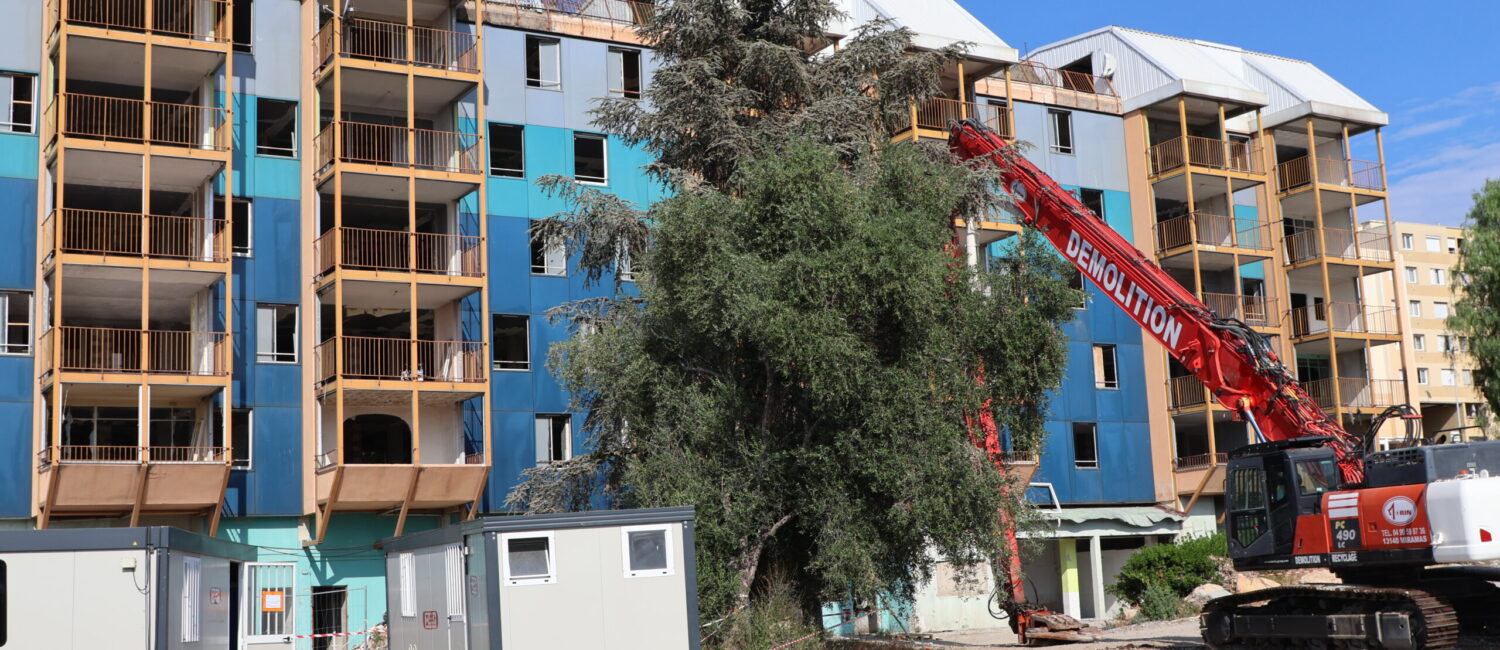 Le grand projet de rénovation urbaine du quartier “Porte de France”, initié par Joseph Segura, maire de Saint-Laurent-du-Var, et son équipe, se poursuit. Jeudi 3 juillet 2025, une nouvelle étape a été franchie avec le lancement de la déconstruction du bâtiment n°6 du quartier du Point du Jour, qui correspondra à la fin de la phase 1 de déconstruction. Celle-ci a été précédée par la déconstruction des autres bâtiments de la partie Sud : la tour 4 en 2019, les tours 7 et 8 en 2022 et la tour 5 fin 2024-début 2025. À la fin de l’été, la tour 6 aura elle aussi disparu. La deuxième phase – déconstruction des bâtiments 1, 2 et 3 – interviendra dans un second temps, après le relogement des habitants concernés.