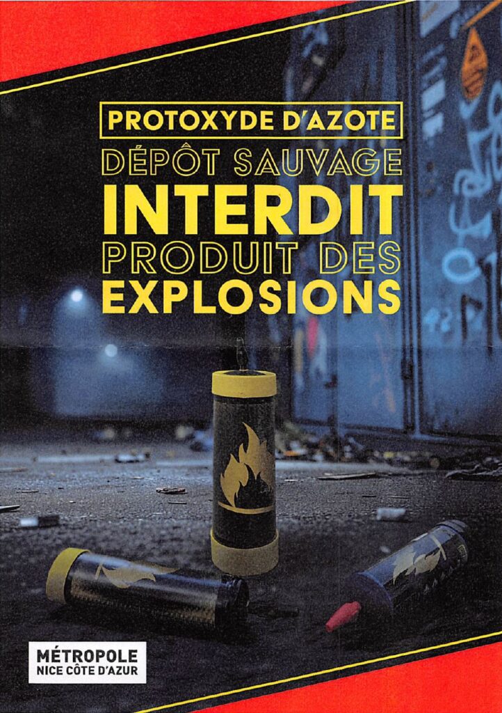 Depuis plusieurs mois, la Métropole Nice Côte d’Azur constate une augmentation préoccupante de l’usage détourné du protoxyde d’azote, particulièrement chez les jeunes, ainsi qu’une multiplication des dépôts de cartouches et bonbonnes sur l’espace public.