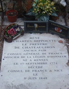 Jusqu’au rattachement du Comté de Nice à la France, la commune reçoit d’autres sépultures illustres. Ainsi celle de René Charles Hippolyte LE PRESTRE DE CHATEAUGIRON, Consul de France à Nice (depuis juillet 1841), décédé à Nice le 9 juin 1848, qui demande dans son testament, daté de 1846, des funérailles simples, une table de marbre et une balustrade en fer.