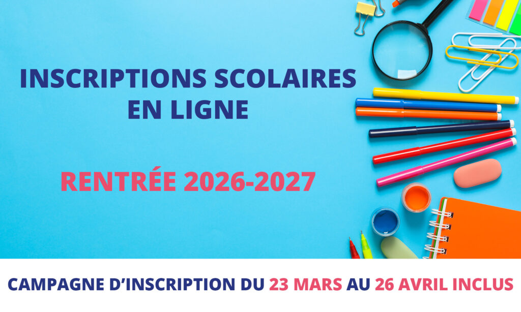 La campagne pour les inscriptions scolaires de la rentrée 2026-2027 se fait du 23 mars au 26 avril 2026 inclus.