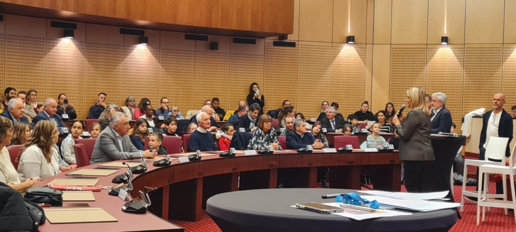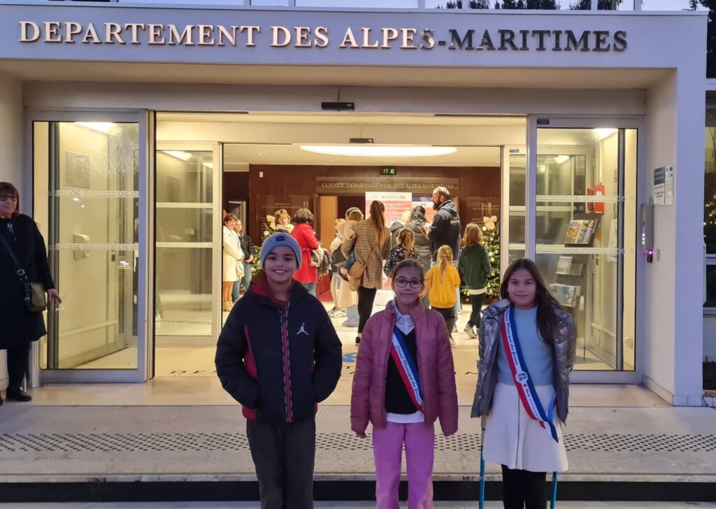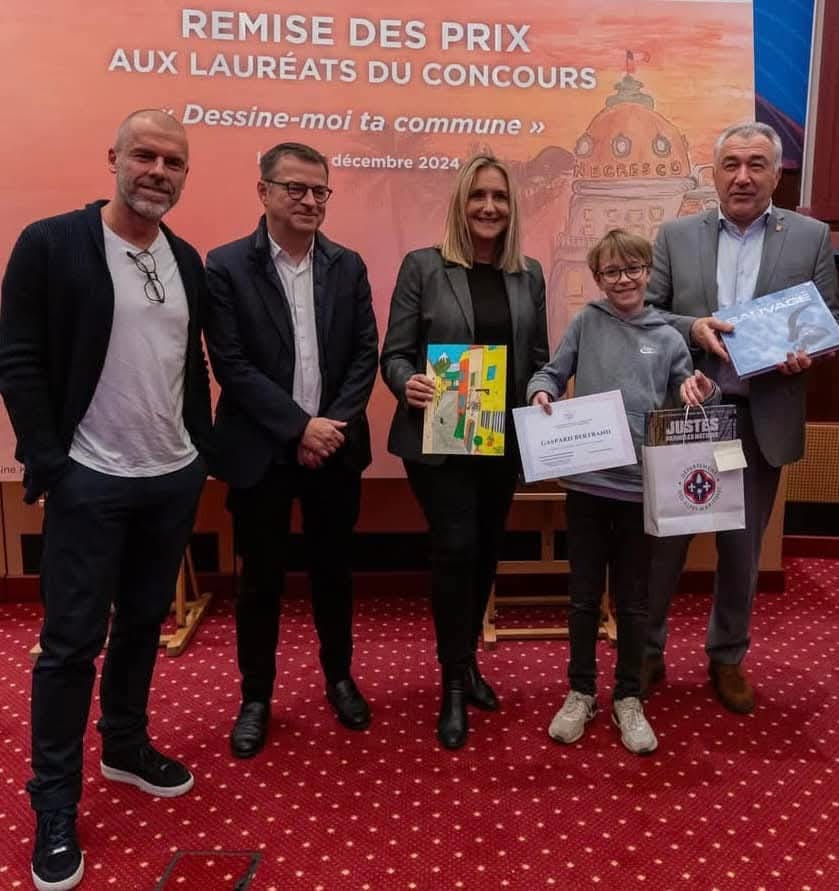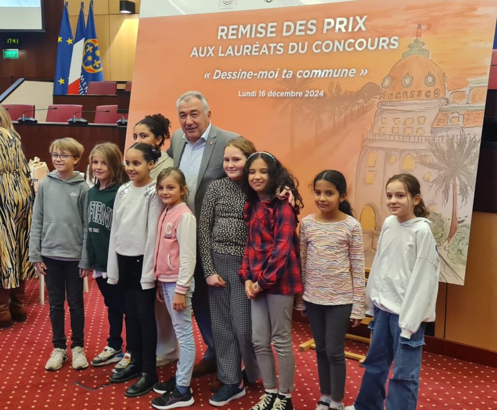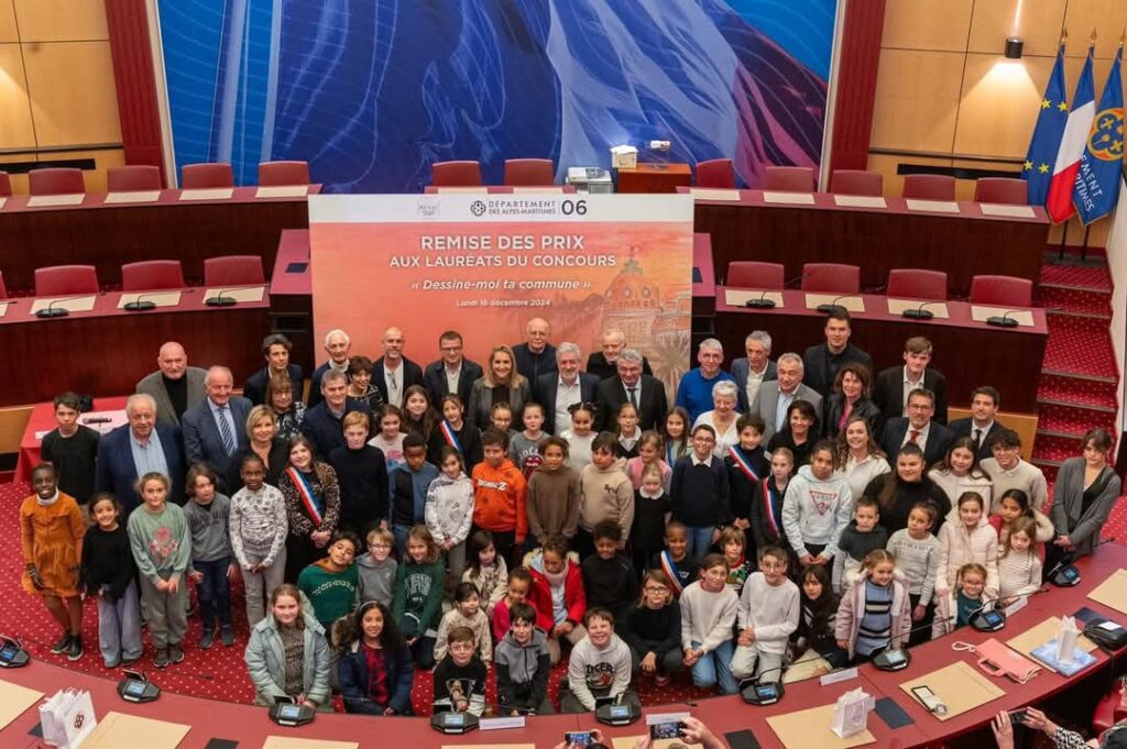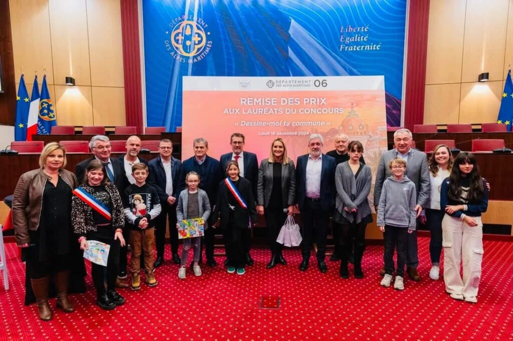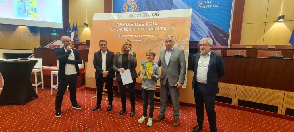 Les enfants du Conseil Municipal des Jeunes (CMJ) ont mobilisé leurs camarades d’écoles pour participer à un concours de dessins, initié par la Sénatrice Alexandra Borchio Fontimp ayant pour thème “Dessine-moi ta commune”. Les trois jeunes conseillers municipaux qui ont su faire vivre ce projet sur leur école ont assisté à la cérémonie qui s’est tenue au Conseil départemental en présence notamment de la sénatrice, de Monsieur le Maire Joseph Seguraet de Raphael Palayer, conseiller municipal en charge du CMJ.