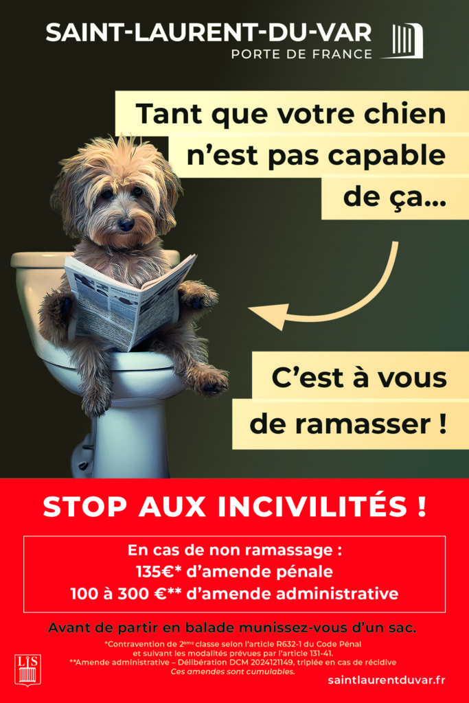Sous l’impulsion de Joseph Segura, maire de Saint-Laurent-du-Var, et Florence Espanol, conseillère municipale déléguée à la cause animale, de nombreuses mesures ont été prises en faveur des animaux, avec notamment une série de campagnes de prévention et de sensibilisation initiées par la ville : déjections canines, abandon des animaux, « je ne laisse pas mon animal dans une voiture »…