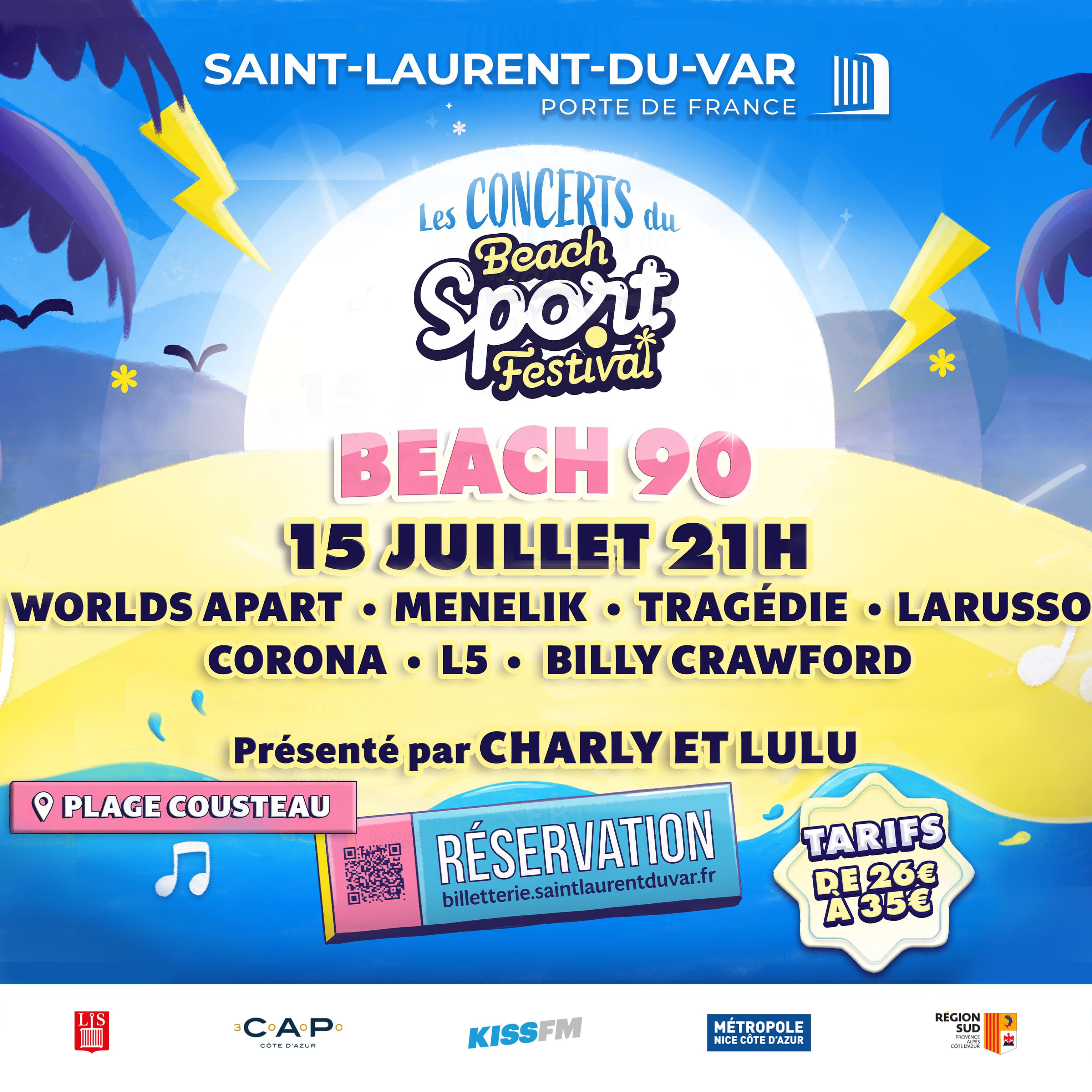 Comme chaque année, 3 concerts sont organisés sur la plage Cousteau dans le cadre du Beach Sport Festival. Au programme : le Kiss FM Live avec les talents de la scène française, une plongée nostalgique dans les années 90 avec Beach 90 et la star de la musique gipsy-pop Kendji Girac.