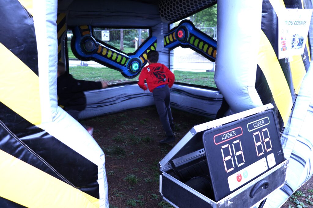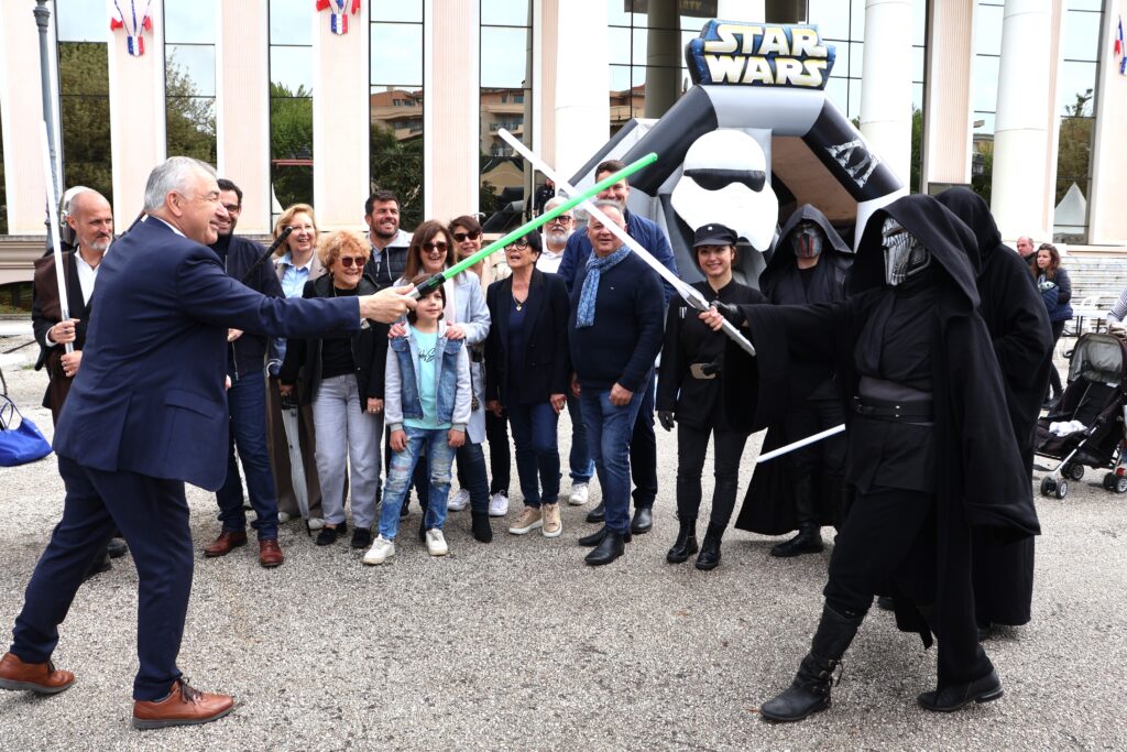 Depuis ce matin, le parvis de la mairie est transformé en “Space Party” à l’occasion de la journée “Vacances en famille”, organisée par la ville de Saint-Laurent-du-Var. Les enfants ont accès toute la journée à une multitude d’animations gratuites sur le thème de l’espace (structures gonflables, réalité virtuelle, observation au télescope, découverte des planètes, planétarium, initiation au sabre laser, ateliers créatifs…) Sans oublier la présence des Transformers et des personnages de Star Wars.